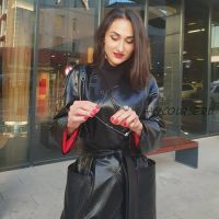 Пошив плаща из искусственной кожи с блестящей фактурной поверхностью.