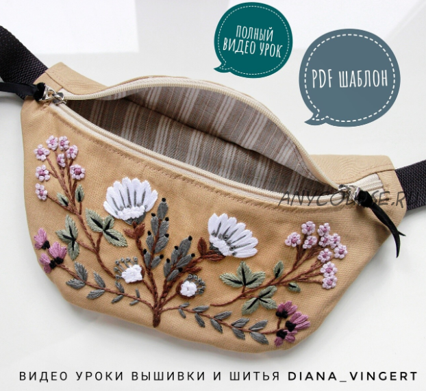 В видео уроке я шаг за шагом покажу как создать напоясную сумку с вышивкой