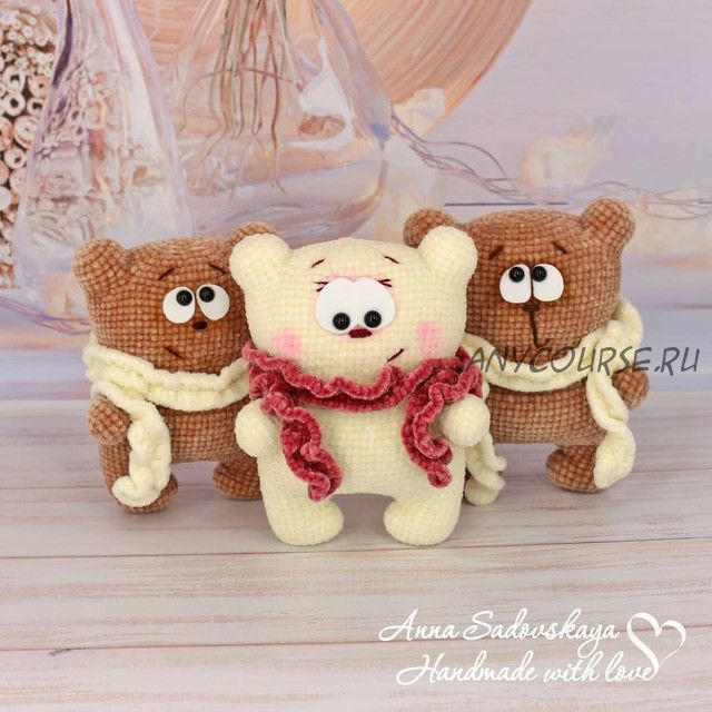 Помимо текстового описания с пошаговыми фотографиями вы получите доступ к видео, на котором увидите весь процесс, включая набивку, оформление, а также все тонкости вязания велюром наглядно на практике.