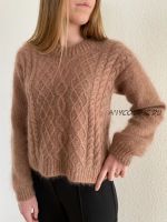 Этот дизайн сочетает в себе различные структуры, косы и араны в пуловере, который вяжется сверху вниз.Пуловер вяжется сверху вниз. Сначала вяжется верхняя часть спинки, затем передние плечи, которые формируются с помощью прибавок. Плечи соединяются, образуя переднюю часть пуловера. Передняя и задняя части пуловера соединяются, образуя тело, которое вяжется по кругу. По краю каждой проймы поднимаются петли и, по кругу, лицевой гладью вяжутся рукава, которые заканчиваются скрещенной резинкой. Наконец, вдоль края горловины поднимаются петли и, скрещенной резинкой, вяжется планка горловины.