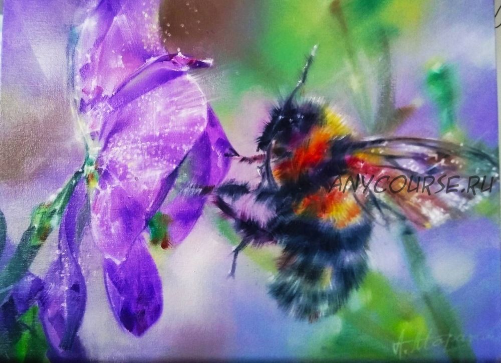 Нежный цветок и пушистый шмель в поисках нектара, теплые лучи солнышка и волшебное сияние картины - все это ждет вас на мастер-классе)