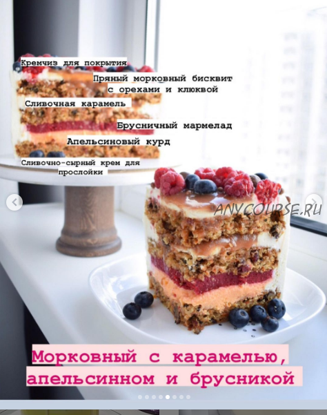? Пряныи? морковныи? торт со сливочнои? карамелью, апельсиновым курдом и брусничным мармеладом