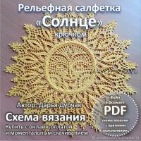 ? Салфетка выполнена по авторскому дизайну Дарьи Дубчак. Салфетка вяжется от центра круговыми рядами без обрыва нити (26 рядов).