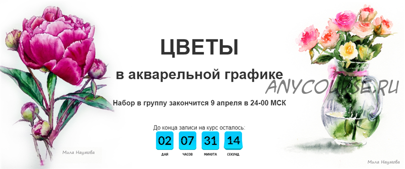 [Рисовать могут все] Цветы в акварельной графике. Тариф - С преподавателем (Мила Наумова)