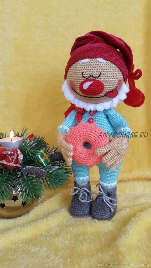 Данный Мастер - Класс представлен в формате pdf 18 страниц, более 30 фото процесса. Уровень сложности средний, требует навыков вязания крючком. Размер игрушки при вязании пряжей указанной в МК около 23 см, без учёта колпачка.