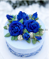 Т,е сделаем точно такую композицию,только в другом цвете. Обтяжка торта сюда не входит. Розы сделаны из белкового крема