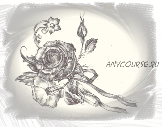 13-й урок. Винтажный букет с розами и лентой (ручка и карандаш)