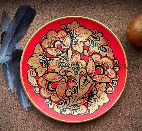 [Русская роспись] Роспись тарелочки в кудрине (Зинаида Голубева)
