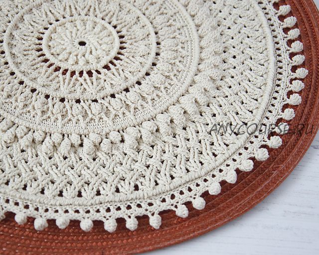 При использовании рекомендуемых материалов, на эту схему уходит около 550-570м нити, и размер готового изделия выходит около 38 см в диаметре по крайним пико.