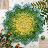 Сейчас вяжу её в однотонном белом цвете, чтобы многие смогли посмотреть как она будет выглядеть в более классическом для салфеток виде.