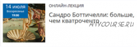 На лекции мы не только будем любоваться картинами, созданными бессмертной кистью флорентийского мастера, но и обсудим, почему творчество Боттичелли во многом выходит за пределы кватроченто и предвосхищает открытия следующего, XVI столетия.