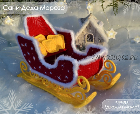 ? Размер получившихся у меня саней в готовом виде из пряжи Пехорка Детская новинка: по полозьям - длина 35 см, ширина 16 см, сами сани - длина по низу саней 23см, ширина 14 см, высота от полозьев до верха спинки саней 23 см. Размер готового изделия может быть иной, все зависит от толщины пряжи, выбранной для вязания.