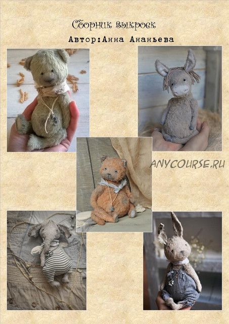 Сборник выкроек 5 в 1: мишка, ослик, кот, слон, заяц (Анна Ананьева)