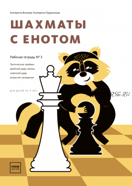 Рабочая тетрадь № 3 продолжает серию «Шахматы с енотом». В этот раз, выполняя практические задания, юные шахматисты познакомятся с интересными ходами и комбинациями, научатся безошибочно начинать партию и не попадаться в ловушки. В тетради подробно разобраны тактические приемы, которые чаще всего встречаются в игре: «Двойной удар», «Связка», «Сквозной удар», «Вскрытое нападение».