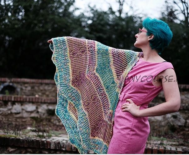Шаль Гага -это достаточно большая, двухсторонняя шаль, из 3-х секций для любителей двухцветного вязания в технике бриошь.