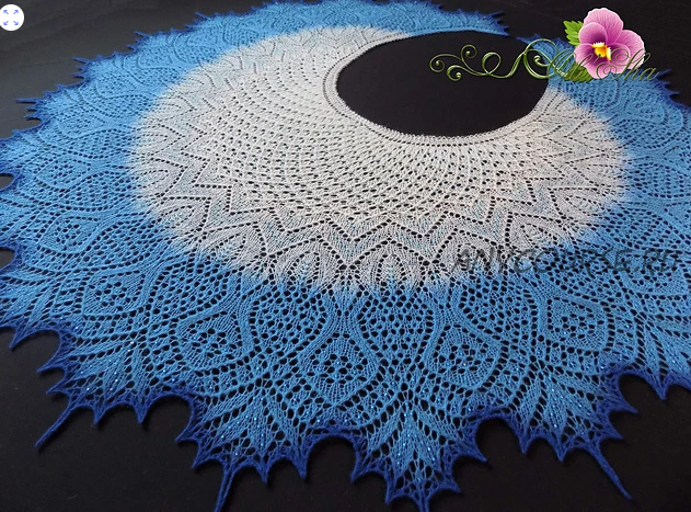 Размеры шали зависят от выбранной Вами пряжи, инструментария и индивидуальной манеры вязания.