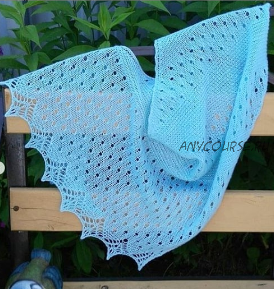 Размер готовой шали: 170-200 см длина наибольшей из сторон, 35-50 см – глубина (зависит от выбранной пряжи и вашей плотности вязания)