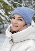 Шапка вяжется поперек, узор - сочетание рядов соединительных столбиков и соединительных столбиков с накидом.