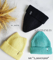 Для примера я наглядно расписала порядовое описание шапочки с покатой макушкой на ОГ 52см и котошапку на ОГ 52см.
