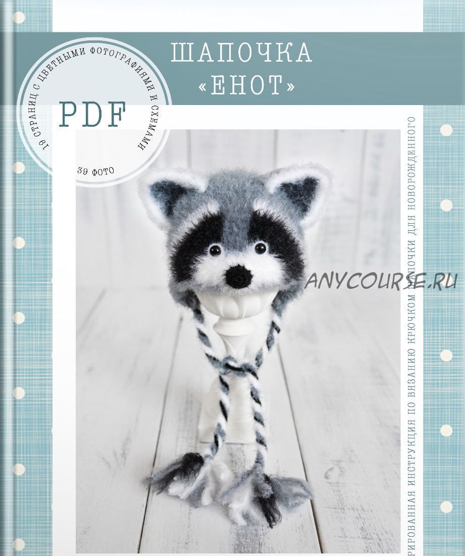 В данном МК дается описание вязания шапочки 'Енот' для новорожденного (крючком). МК состоит из 19 страниц и включает множество фотографий и схем.