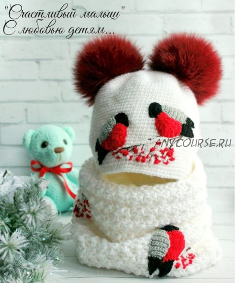Кстати на шапочки с птичками есть мастер класс. В мк шапочка узором 'рис' крючком и 2 способа вязания макушки. Для 2х и 1го помпона.