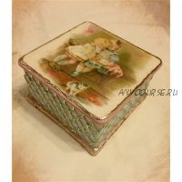 - Вы освоите технику имитации глазурованного фарфора, познакомитесь с материалами, с помощью которых любая деревянная, фанерная или мдф-шкатулка превратится в фарфоровую не только зрительно, но и по ощущениям, когда вы возьмете ее в руки,