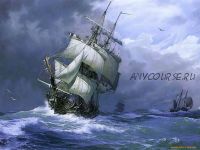 А еще Вы поймете, как написать объемные волны с пеной и брызгами, паруса на корабле, красивые облака, свет в небе и на воде, а также передадите на холсте динамику движения парусников.