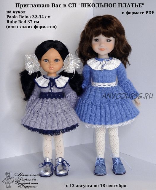 ? Совместный проект по вязанию спицами нарядного, школьного платья со съемным воротничком на кукол Paola Reina 32-34 см и Ruby Red 37 см.