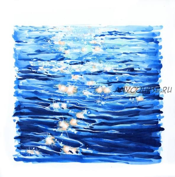На этом уроке я покажу вам основные приемы изображения воды в технике спиртовых маркеров.