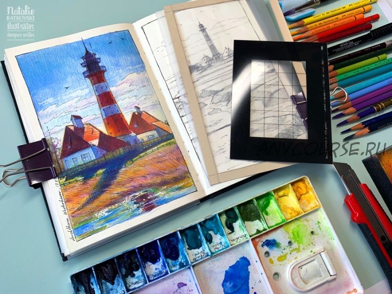 Смешанная техника для пленэра. Линер, акварель и карандаши. Онлайн практика (Натали Ратковски)