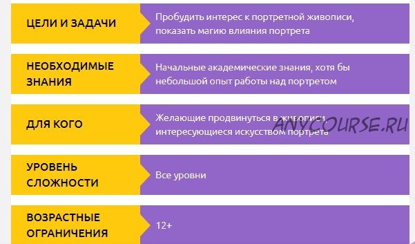 'Портретная живопись. Работа с моделью,создание образа. Портретотерапия - поиск гармонии личности'- Вместе с профессиональным художником и опытным педагогом с многолетним стажем вы подробно разберете на конкретных примерах (открытках, каталогах, картинах) различные способы и приемы в создании портретов разных людей - с натуры и сочиненные образы, мужские и женские образы.
