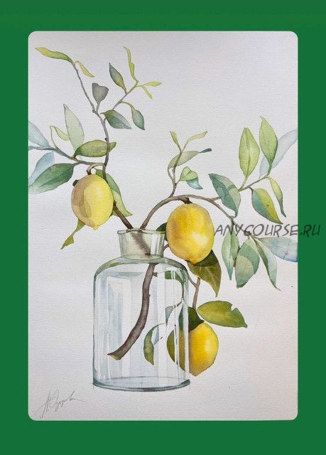 Научись рисовать сочные лимончики и прозрачную стеклянную банку акварелью легко по авторской методике обучения профессионального художника.