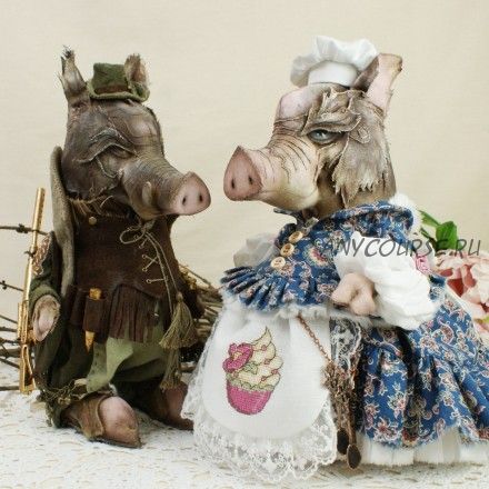 Продолжаем готовиться к году свиньи. Очень люблю делать фактурные, интересные по крою игрушки, поэтому запланировала семью Кабанчиков. Большая интересная мордаха, упитанные тела, интересные костюмы (поэтому и выбрала королевского егеря и королевскую повариху, чтобы была возможность развернуться по костюмам)