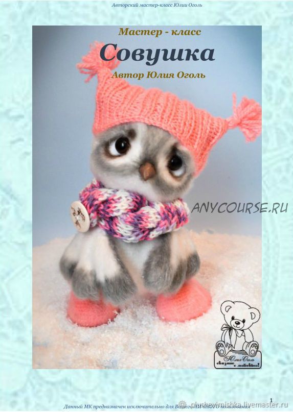 ? Мастер-класс составлен на 55 стр печатного текста + пошаговые фото. Рост игрушки 23 см. Полностью на проволочном каркасе. Уровень сложности средний. В Мк входит описание шапочки в двух вариантах, шарфика и валеночек.Игрушка связана крючком.