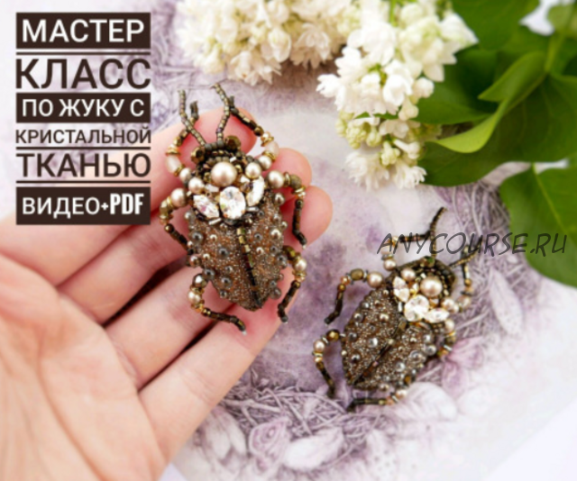 ? Авторский онлайн мастер класс по жучку с использованием кристальной ткани Crystal Galuchat Swarovski.