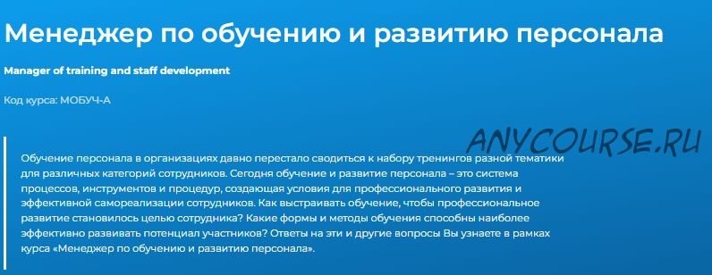 Модуль 1. Профессия менеджера по обучению