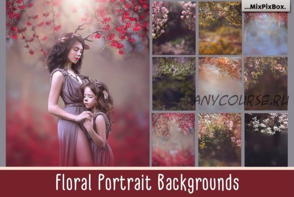 [Сreativefabrica] Floral Portrait Backgrounds. Цветочные цифровые фоны (MixPixBox)