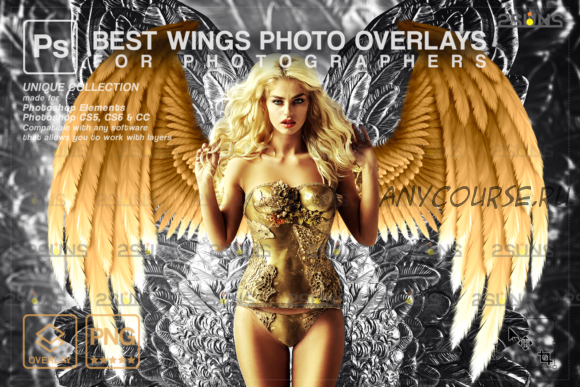 [Сreativefabrica] Gold Angel Wings Overlay & Angel Wings. Золотые крылья и наложения (2SUNS)