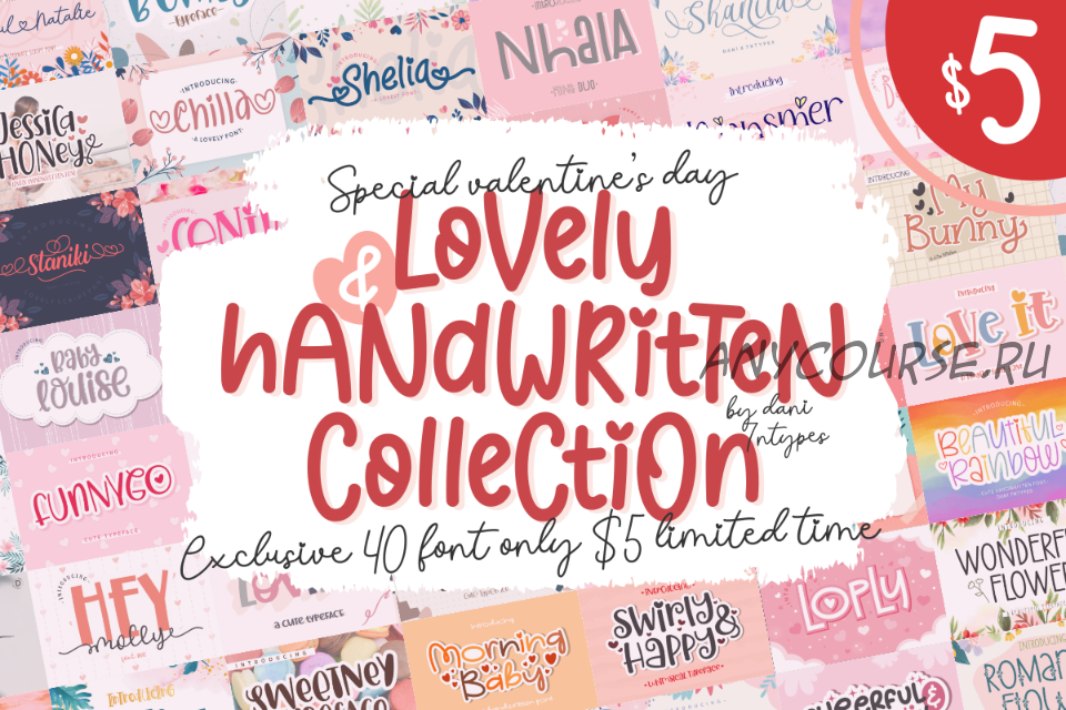 Набор Lovely & Handwritten Bundle содержит 40 великолепных романтических шрифтов, подходящих для всех ваших проектов, посвященных Дню Святого Валентина, таких как открытки, свадебные приглашения, настенные рисунки и даже создание милых футболок.