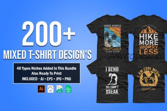 Пакет из 200+ смешанных редактируемых дизайнов футболок?