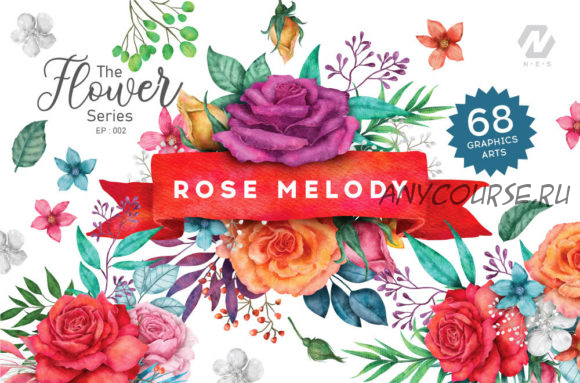 Это набор КРАСОЧНЫХ РОЗОВЫХ И ЦВЕТОЧНЫХ АКВАРЕЛЬНЫХ ЭЛЕМЕНТОВ
