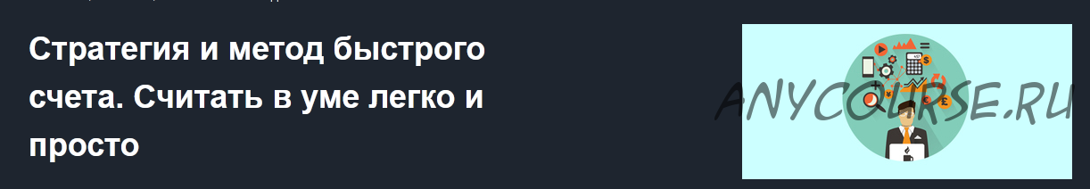 Счет в уме - это не только практичный инструмент для повседневной жизни, это способ развиться, повысить свои умственные способности. Этот курс позволит вам получить знание и умение, как эффективно считать в уме, в том числе производить сложные вычисления. А также даст вам шанс развить себя, действительно стать умнее.