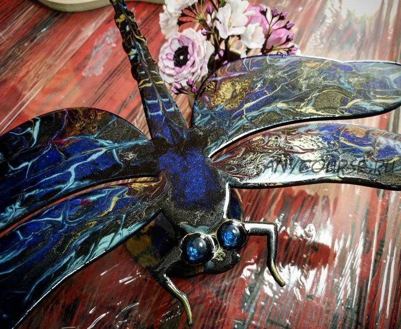 По многочисленным просьбам рисуем реалистичную стрекозу на отдельной заготовке. Эпоксидной смолой.