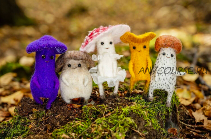 На курсе мы будем делать пальчиковые грибы в технике мокрого войлока.