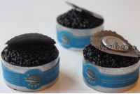 - слой и черная икра из голубикового конфи.