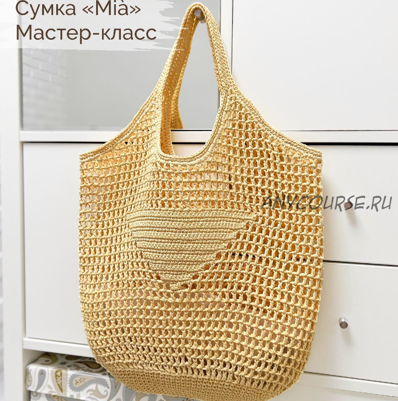 Я проведу вас по всему процессу создания аксессуара: вы узнаете как вязать необычное дно, научитесь вязать филейную сетку по кругу и незаметно соединять ряды, проводить ВТО изделий из рафии, соединять два конца рафии между собой и др.