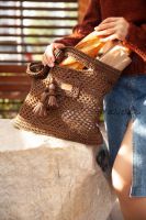 Модель может быть связана из пряжи «Рафия», так и из ленточного хлопка, так же возможно сочетать два вида пряжи и вязать в две нити одновременно и рафию и хлопок/лен.