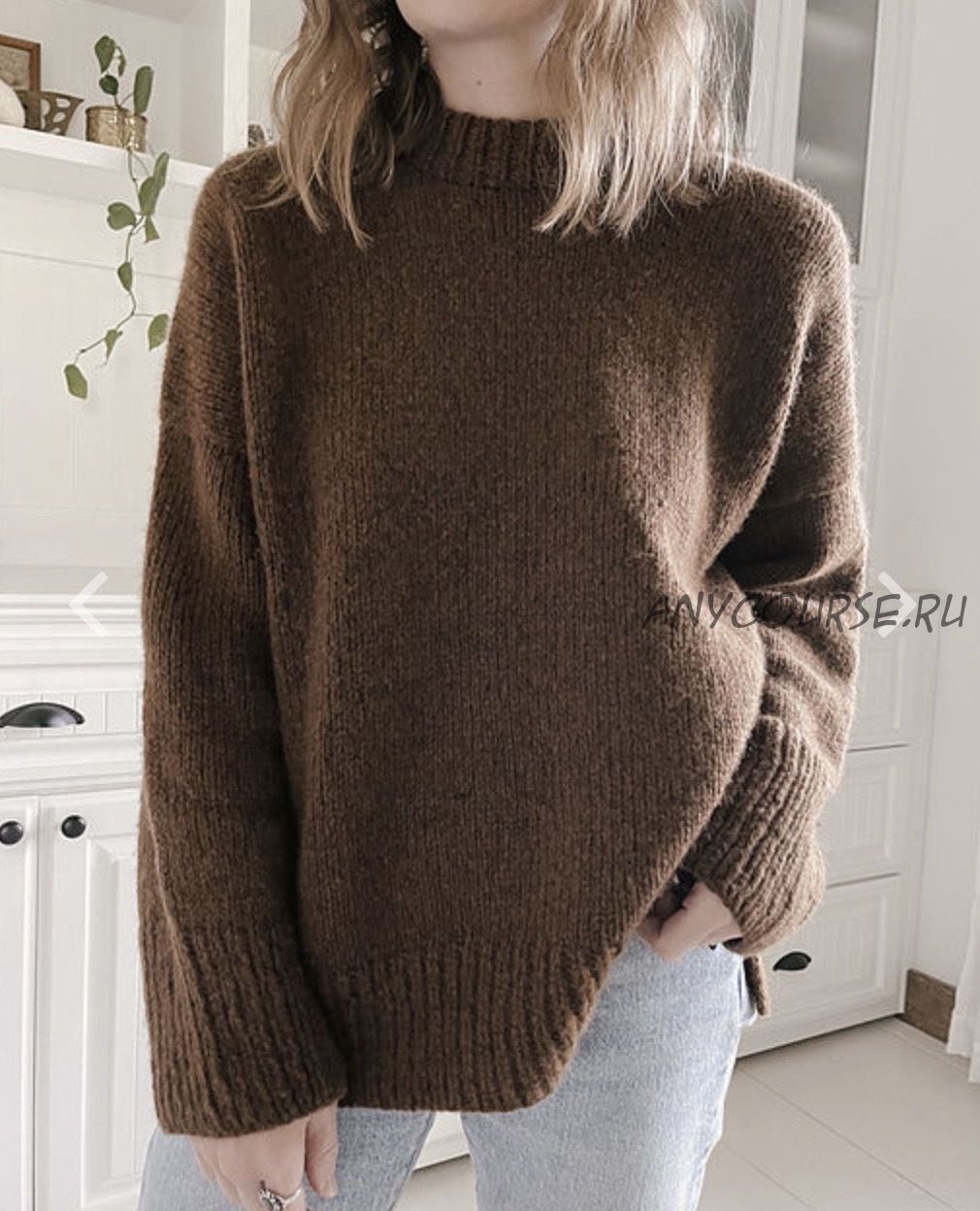 Классический свитер оверсайз для прохладных дней вяжется спицами сверху вниз.