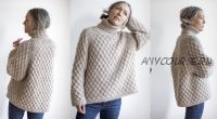 Свитер вяжется спицами сверху вниз. Сначала вяжется воротник, затем вяжутся укороченные ряды, чтобы поднять заднюю часть горловины и сформировать вырез горловины. Остальная часть свитера – кокетка, туловище и рукава вяжутся по кругу.