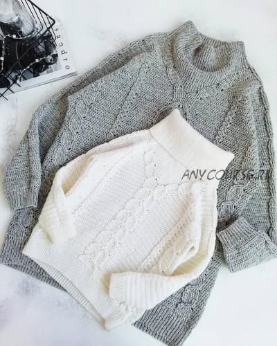 Серый взрослый свитер-туника на 46 размер связан из Etrofil Savona 50г/175м, крючком N3, расход - 540г.